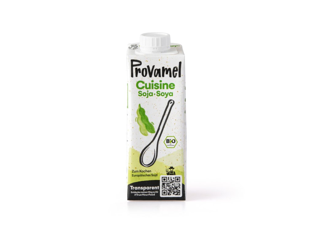 Bio sójová náhražka smetany Provamel obsahuje 17% tuku a je rostlinnou alternativou mléčné smetany. Při vaření ji lze použít jako běžně dostupnou smetanu. Neobsahuje laktózu a je zcela veganská.Specifikace