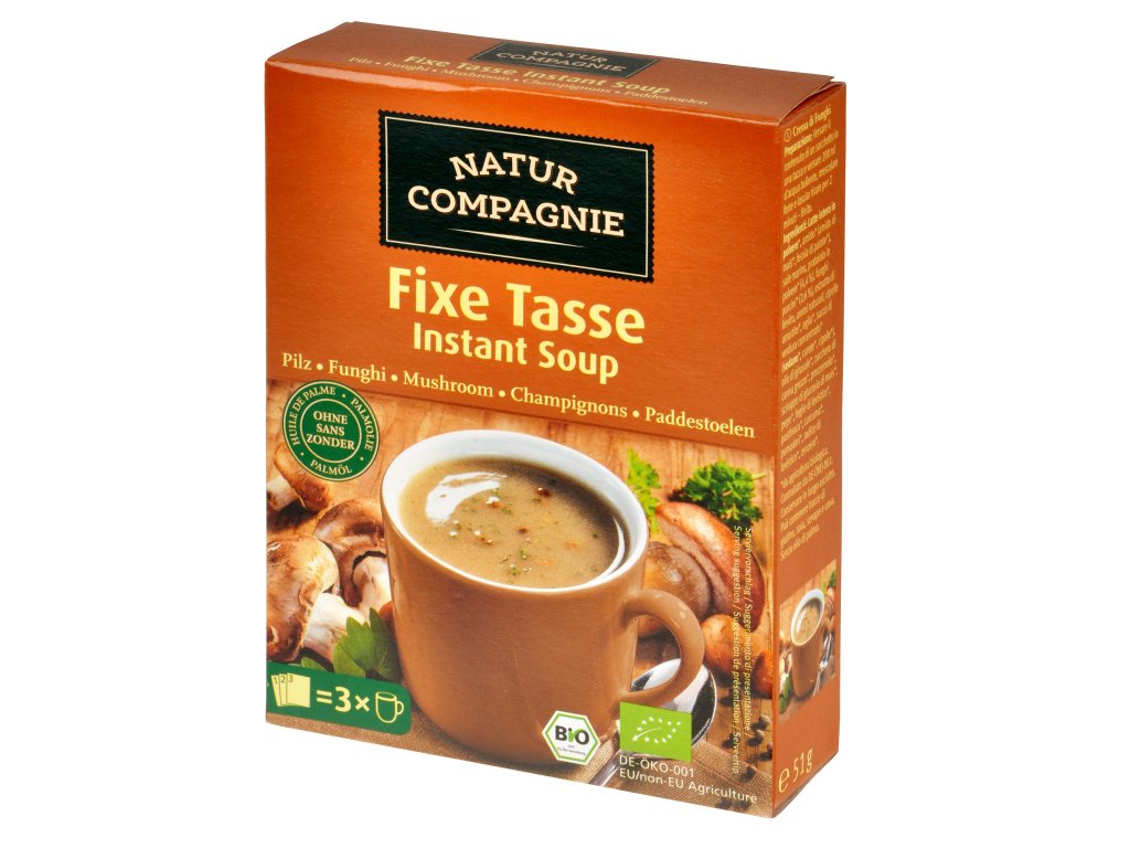 Polévka instantní houbová je připravena na bázi bramborových vloček, rýžové mouky, sušeného mléka a žampiónů. Je jemně okořeněna přírodním houbovým aroma, petrželí, pepřem, kurkumou a rozmarýnem. Při přípravě instantních polévek Natur Compagnie se používají jenom ty nejlepší suroviny a produkty ekologického zemědělství. Výsledkem jsou špičkové výrobky s přitažlivou chutí .Celý výrobní proces a kvalita produktů podléhají té nejpřísnější kontrole.