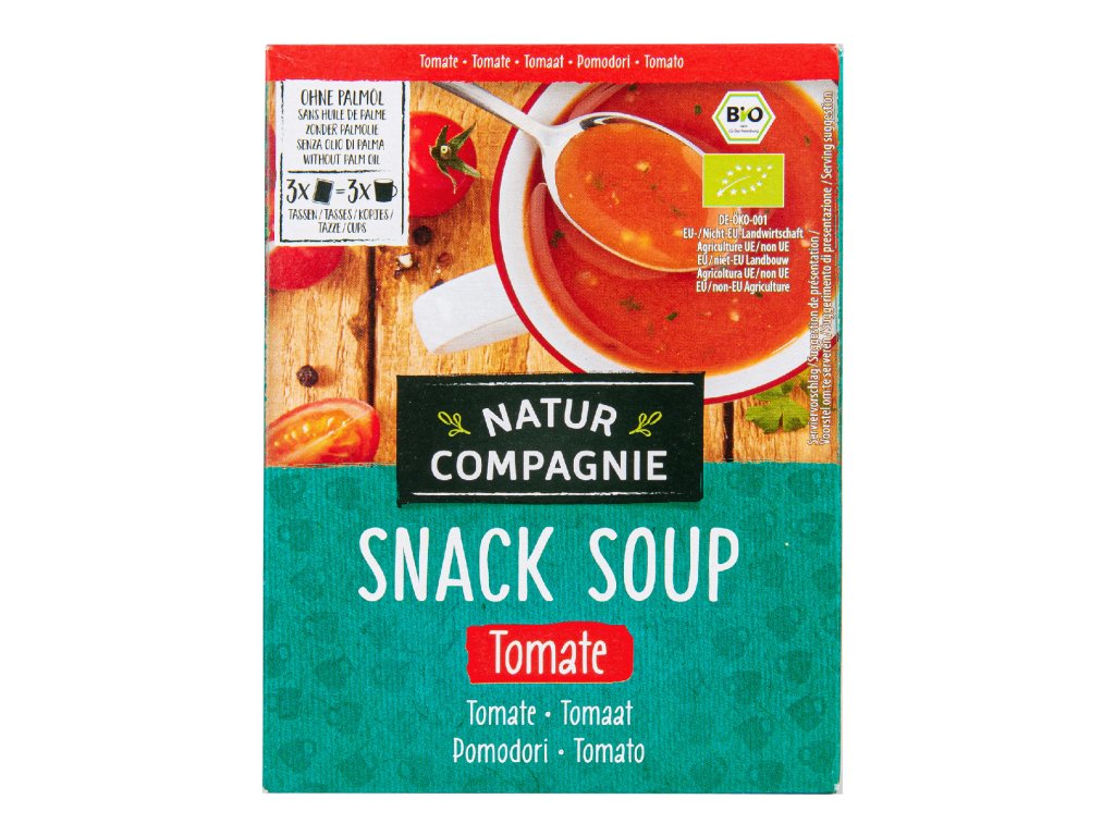 Polévka instantní rajská je připravena na bázi rajčatového prášku a kukuřičného škrobu. Lahodnou, lehce nasládlou chuť jí dodává glukózový sirup a třtinový cukr, obsah cibuli a česneku doplňuje směs koření. Při přípravě instantních polévek Natur Compagnie se používají jenom ty nejlepší suroviny a produkty ekologického zemědělství. Výsledkem jsou špičkové výrobky s přitažlivou chutí . Celý výrobní proces a kvalita produktů podléhají té nejpřísnější kontrole.