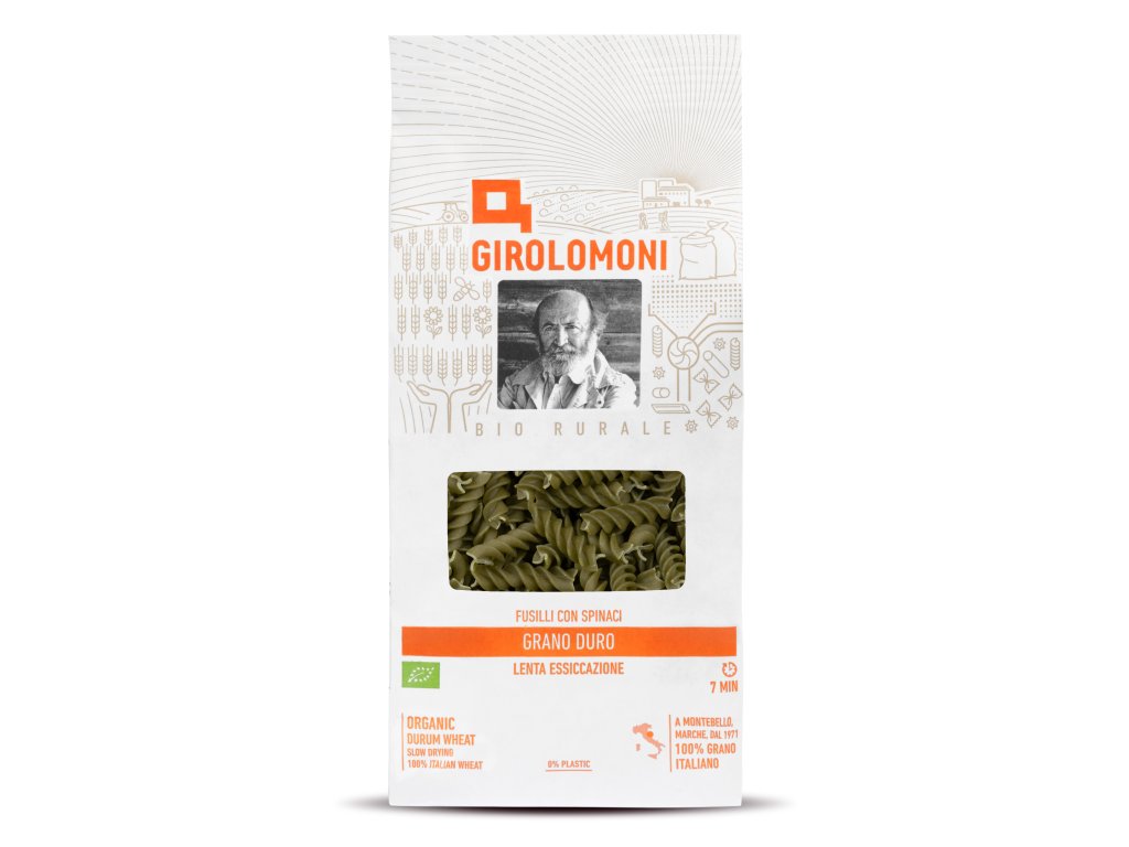 Gino Girolomoni byl italský starosta, který už před 50 lety prosazoval návrat k poctivému a čestnému způsobu zemědělského hospodaření. Začal tedy pěstovat bio tvrdozrnnou pšenici, ze které pak jako první v Itálii vyráběl celozrnné semolinové těstoviny. V 70. letech minulého století Gino čelil nesmyslnému zákazu ze strany státu („celozrnné těstoviny jsou škodlivé"), tento zákaz však samozřejmě dávno neplatí a jeho potomci dnes vyrábějí celé spektrum vynikajících semolinových těstovin - bílých i celozrnných.