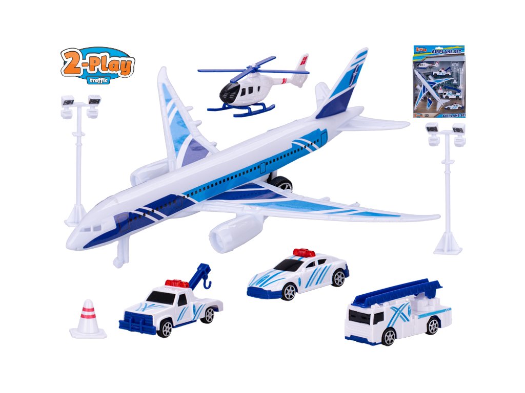 2-Play Traffic letadlo zpětný chod s vozidly 4ks a doplňky v krabičce