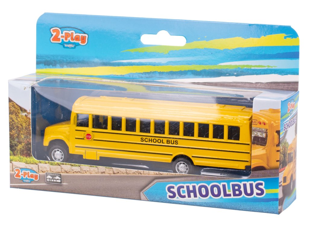 2-Play Traffic školní autobus americký 14cm kov zpětný chod v krabičce