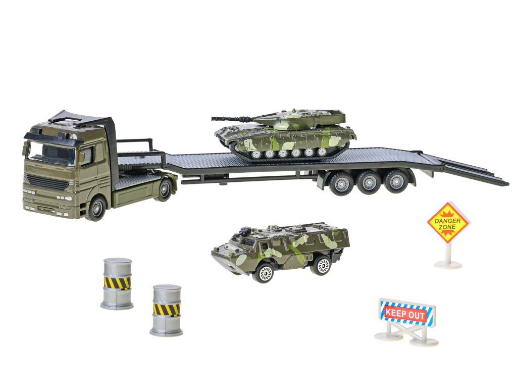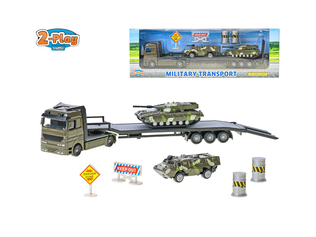 2-Play Traffic vojenský transporter 25cm kov s obrněnými vozidly volný chod 2ks v krabičce