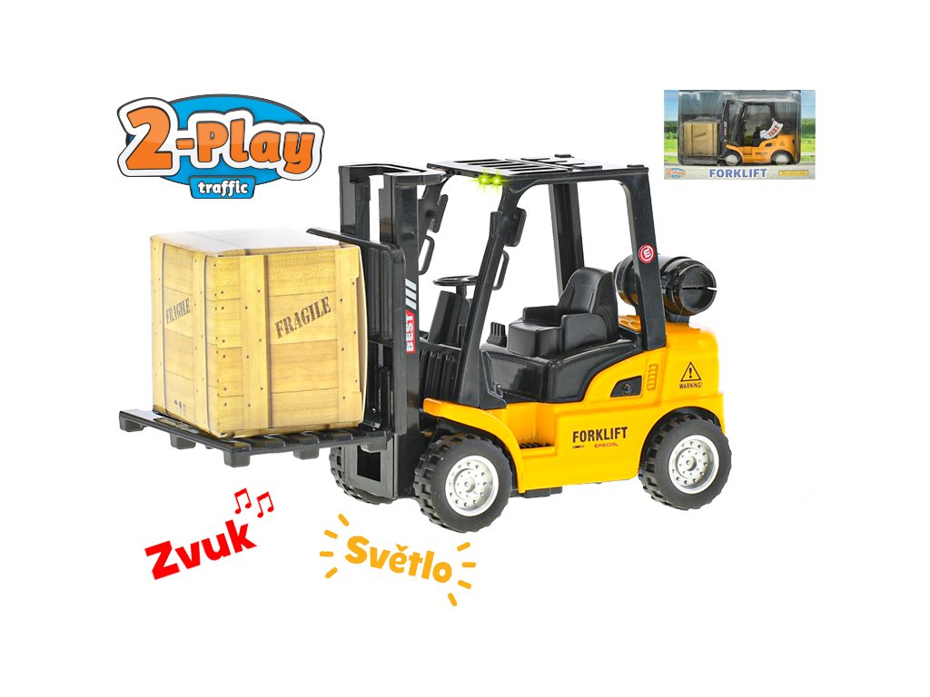 2-Play Traffic vysokozdvižný vozík 14cm kov zpětný chod na baterie se světlem a zvukem v krabičce