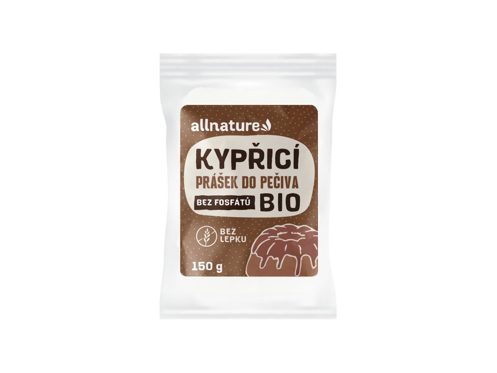 Allnature Kypřící prášek do pečiva je vhodný k přípravě třeného, křehkého, piškotového těsta, perníků a jiných pokrmů.