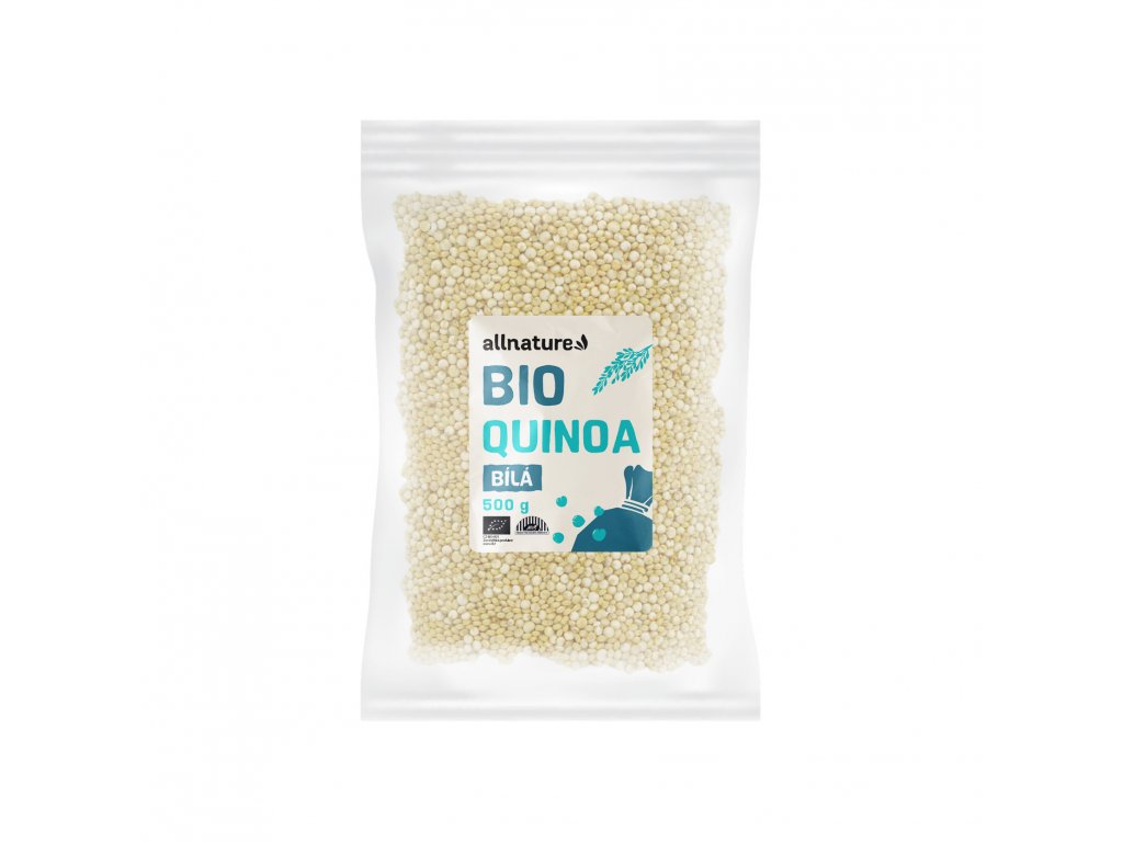 Bílá quinoa Allnature neboli white quinoa zaujme svou jemnou máslovou chutí. Bílá quinoa je jedním ze tří nejčastějších druhů této pseudoobilniny. Vzhledem ke své jemnosti však patří k nejoblíbenějším a nejvyužívanějším. Vzhledem k tomu, že se jedná o přirozeně bezlepkovou potravinu, mohou ji bez obav zařadit do svých jídelníčků jak celiaci, tak osoby trpící intolerancí na lepek. Díky množství bílkovin a dalších cenných živin je quinoa bílá oblíbeným zpestřením zdravých i vegetariánských nebo veganských jídelníčků.