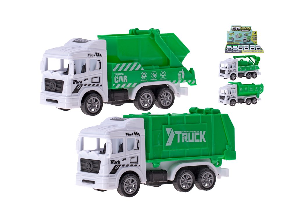 Auta popelářské 12cm zpětný chod 4druhy 12ks v DBX