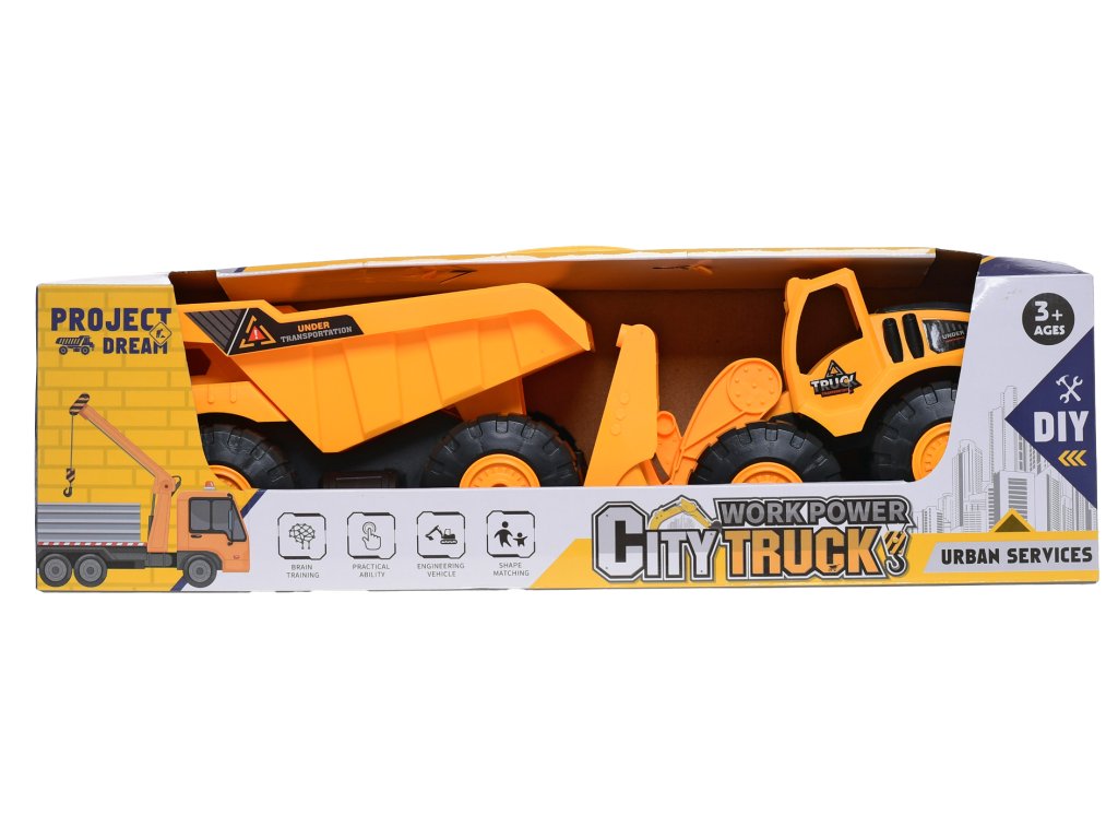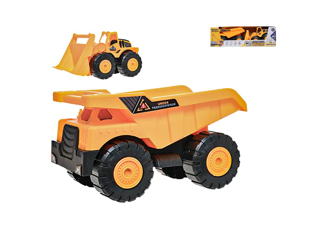 Auta stavební bagr nakladač 24cm + stavební sklápěčka 26cm volný chod v krabičce