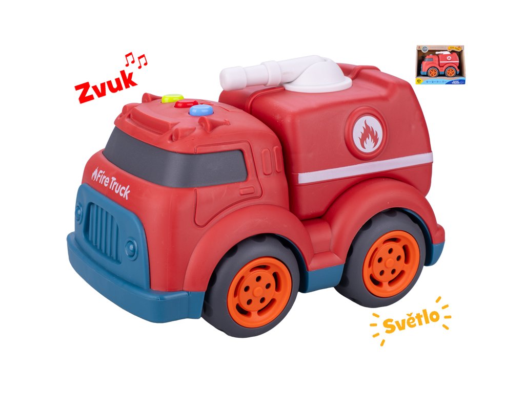 Auto hasiči 17cm volný chod na baterie se světlem a zvukem 18m+ v krabičce