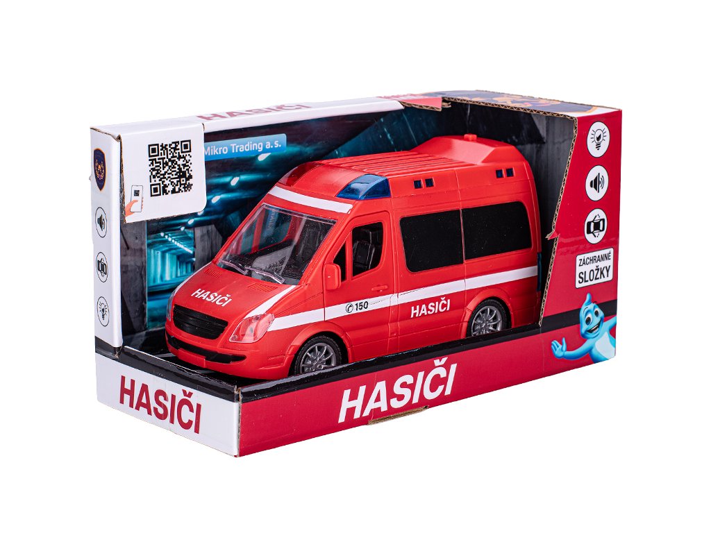 Auto hasiči CZ 21,5cm 1:20 na setrvačník na baterie se světlem a zvukem v krabičce