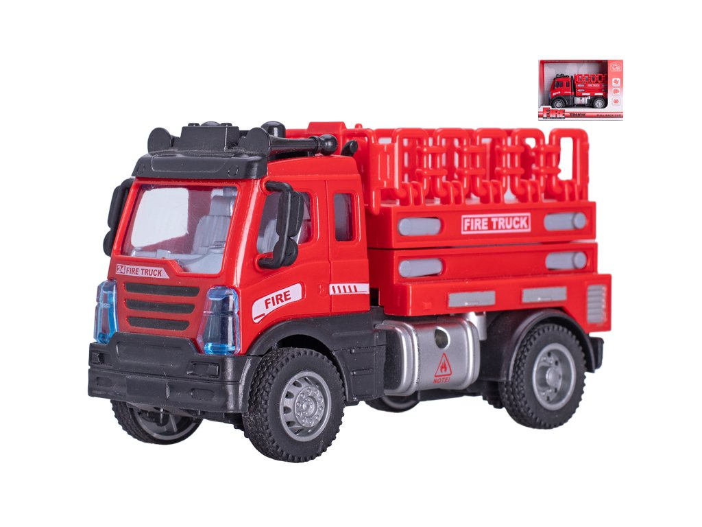 Auto hasičské 12cm zpětný chod s plošinou v krabičce