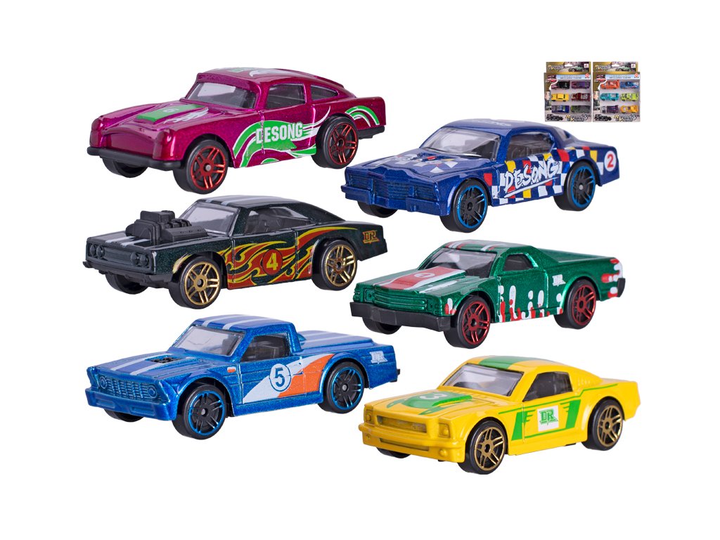 Auto retro 7cm kov volný chod 3druhy 6ks v krabičce