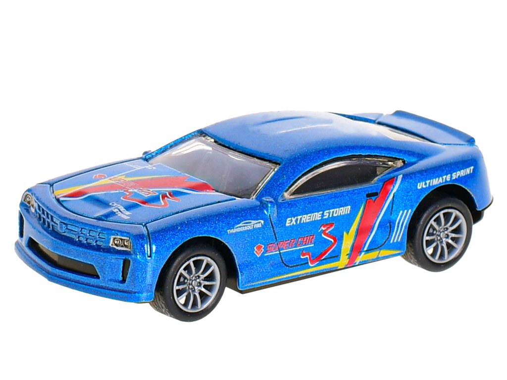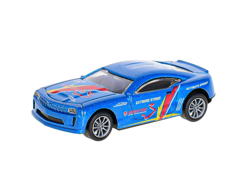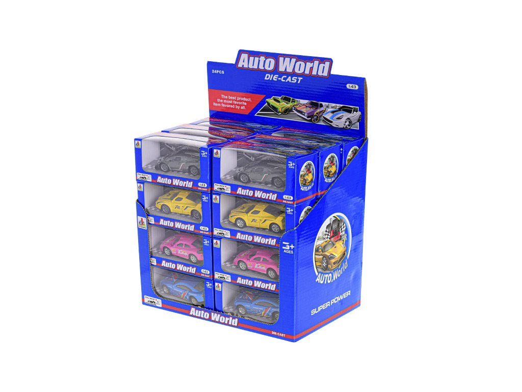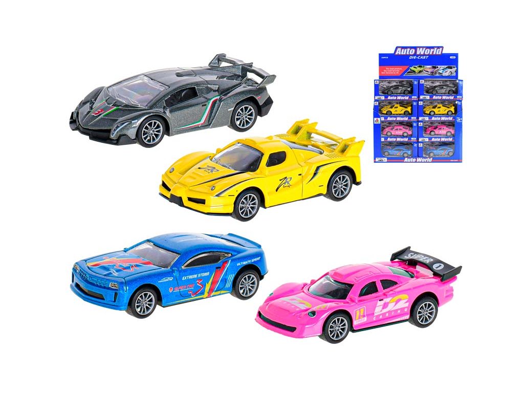 Auto sportovní 10cm 1:43 kov zpětný chod 4druhy v krabičce 24ks v DBX