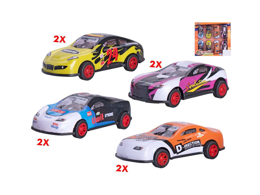 Auto sportovní 8,5cm kov zpětný chod 4druhy 8ks v krabičce