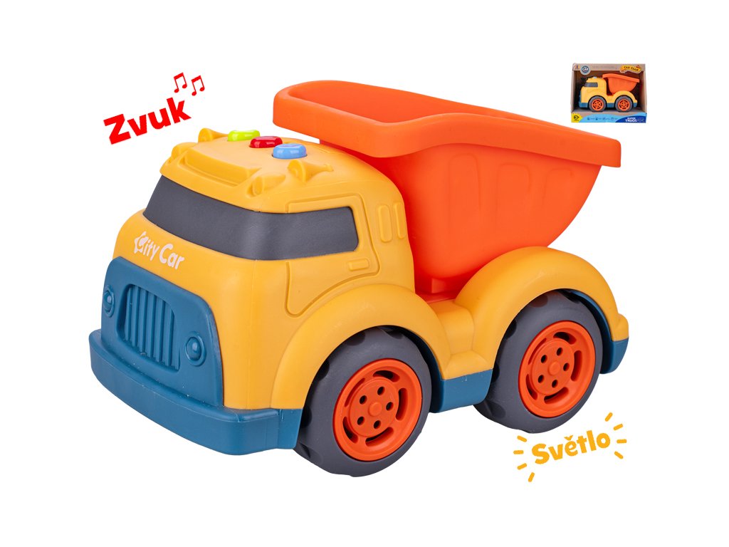 Auto stavební 17cm volný chod na baterie se světlem a zvukem 18m+ v krabičce