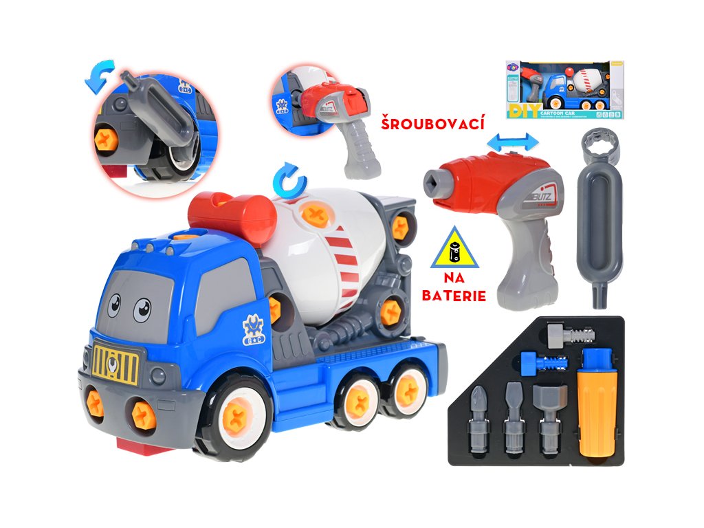 Auto stavební míchačka 28cm šroubovací s vrtačkou na baterie a doplňky v krabičce