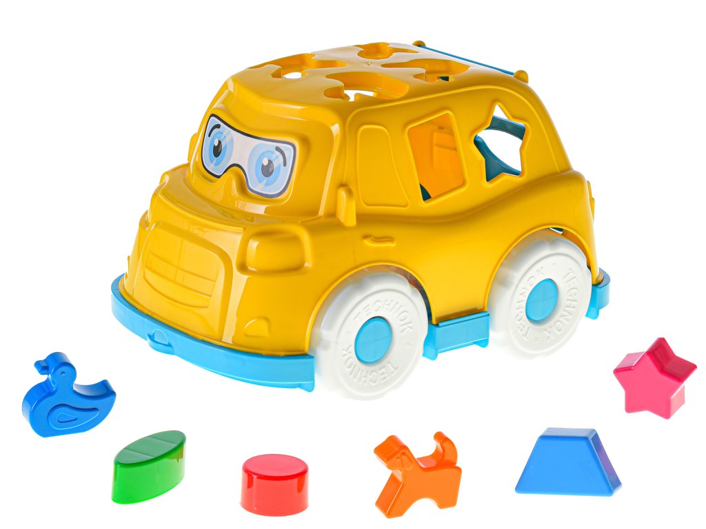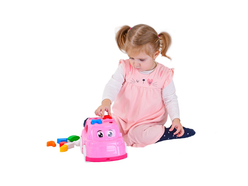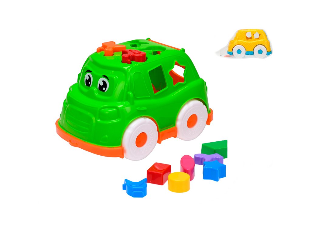 Auto/vkládačka 25,5cm 2v1 geometrické tvary a zvířátka 2barvy 12m+ v síťce