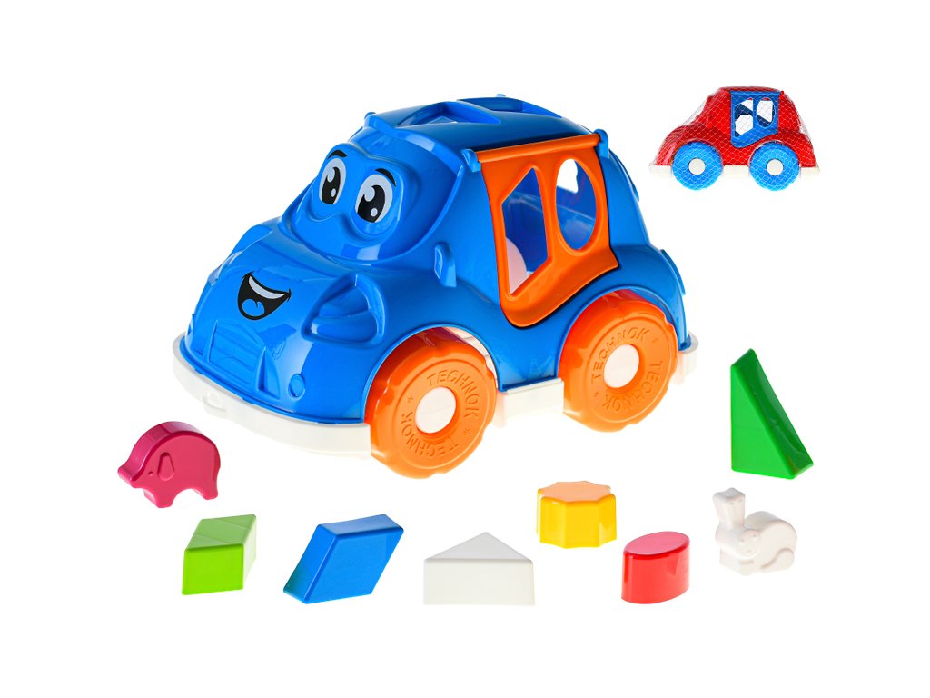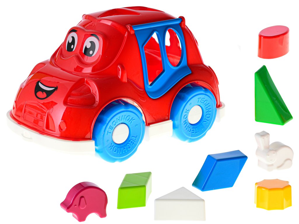 Auto/vkládačka 25,5cm 2v1 geometrické tvary a zvířátka 2barvy 12m+ v síťce