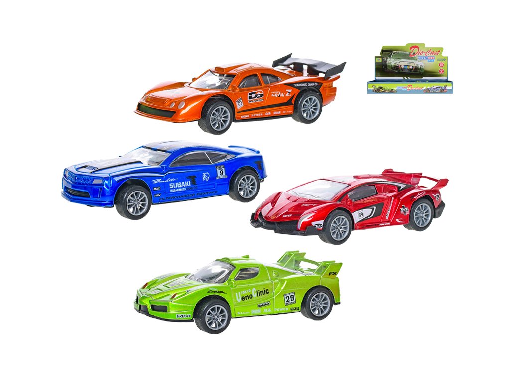 Auto závodní 10cm 1:36 kov na zpětný chod 4druhy 12ks v DBX