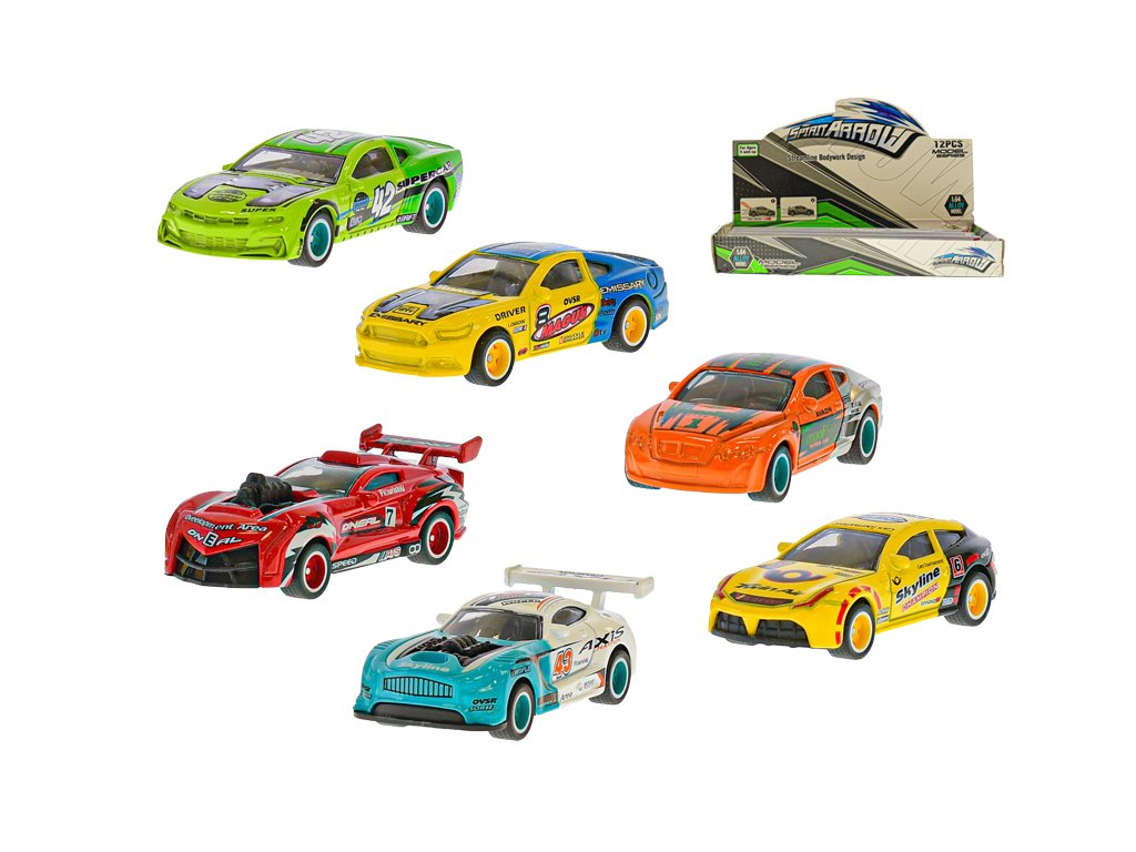 Auto závodní 7cm kov na volný chod 6druhů 12ks v DBX