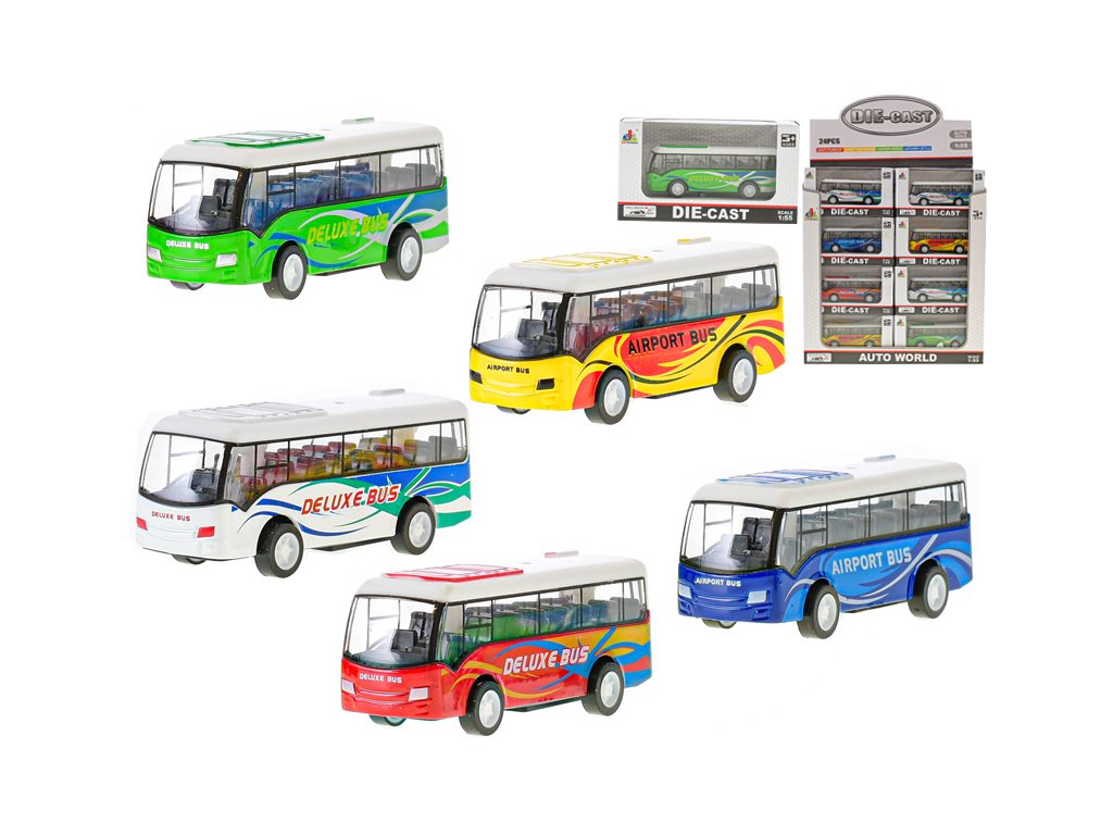 Autobus kov 9cm zpětný chod 5barev v krabičce 24ks v DBX