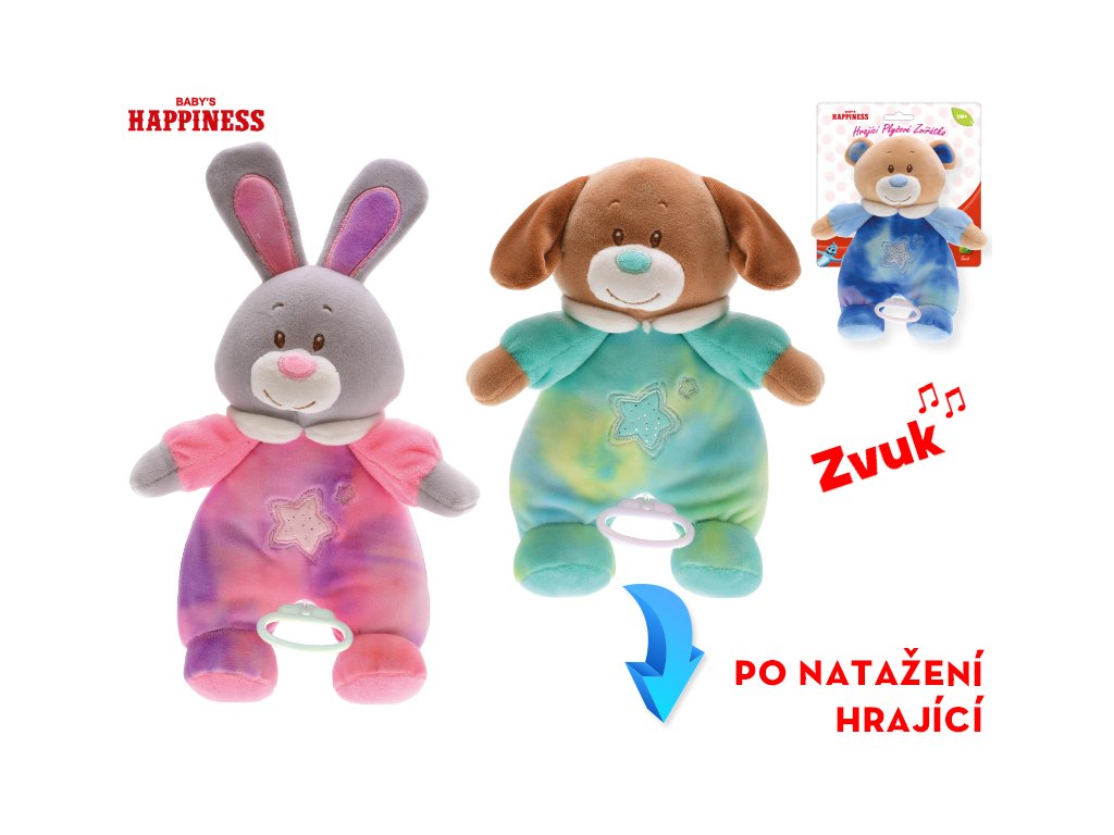 Baby Happiness zvířátko plyšové 26cm se zvukem na natažení 0m+ 3druhy na kartě v sáčku