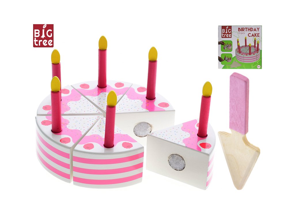 Big Tree dort dřevěný 15x4,5cm se 6ks klínků dortu, 6ks svíček a 1ks dezertní lopatky v krabičce