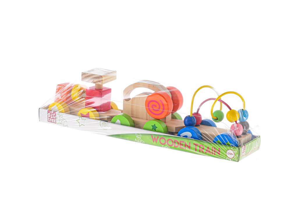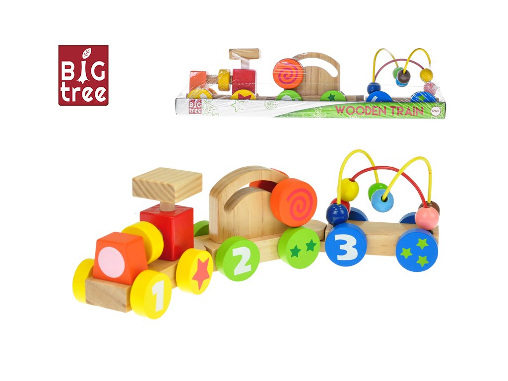 Big Tree vláček s vagónky 33cm dřevěný 12m+ ve fólii