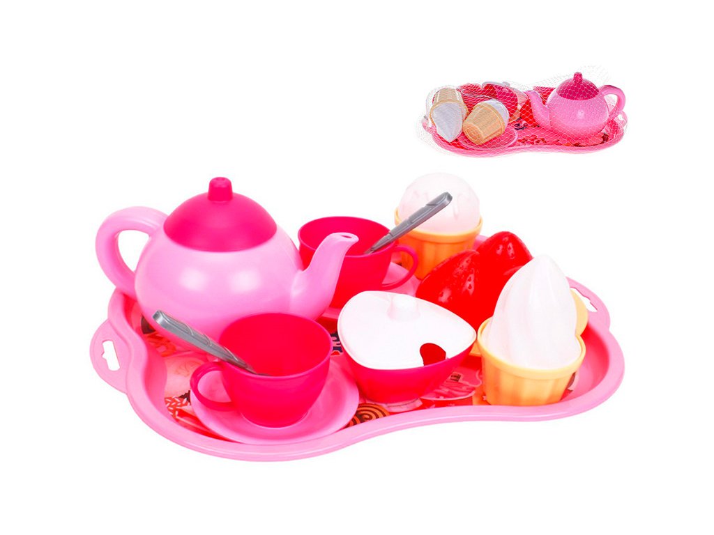 Čajový set s podnosem a deserty 15ks nádobí v síťce