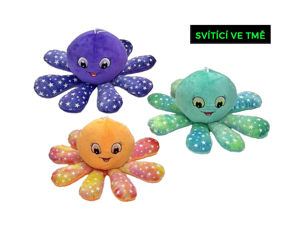 Chobotnička plyšová 10cm svítící ve tmě 3barvy 0m+
