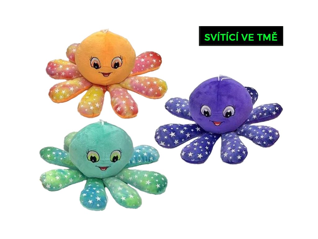 Chobotnička plyšová 15cm svítící ve tmě 3barvy 0m+