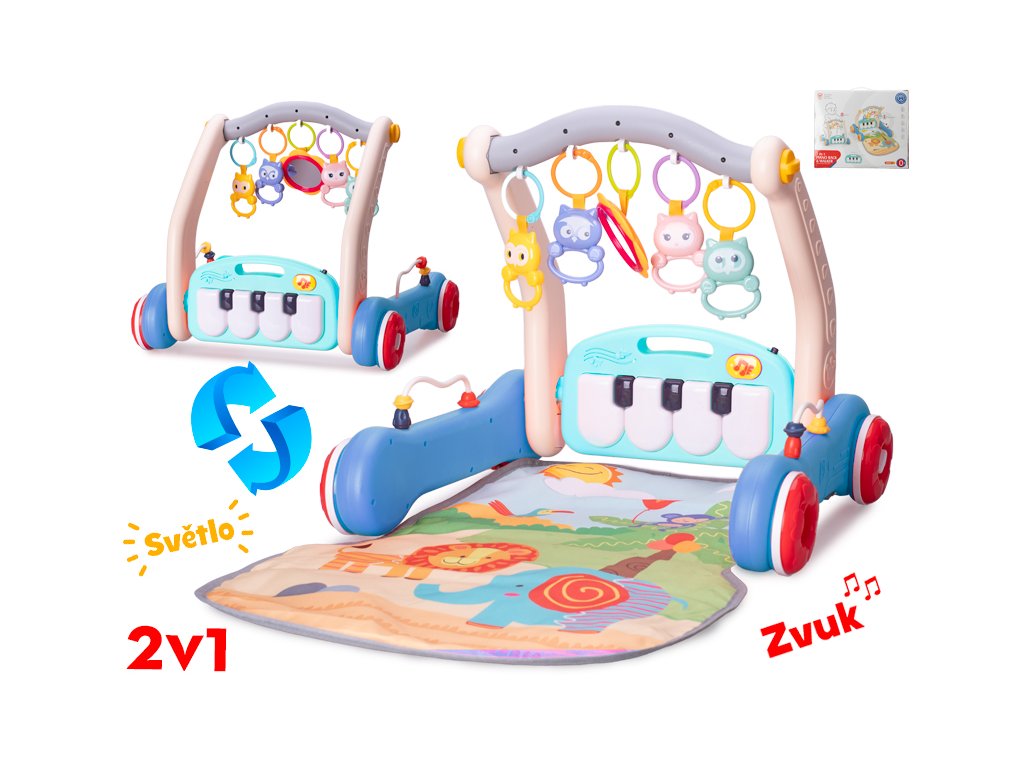 Chodítko s podložkou 75x50x42cm 2v1 s modrým piankem na baterie se světlem a zvukem 0m+ v krabičce