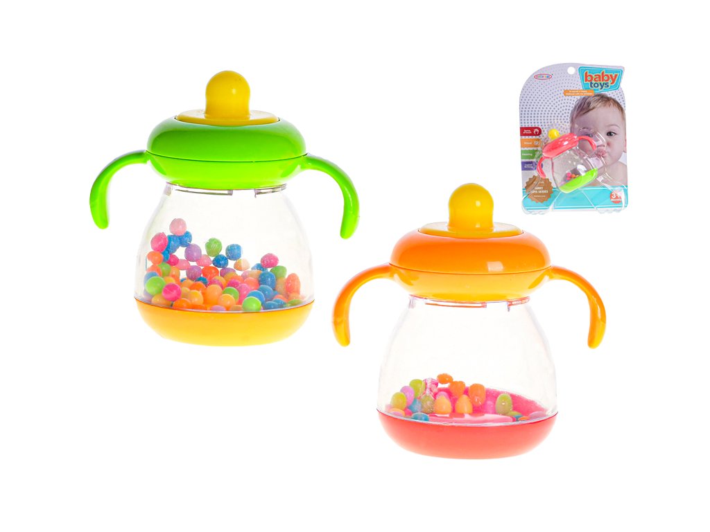 Chrastítko lahvička 8cm 3m+ 3barvy na kartě