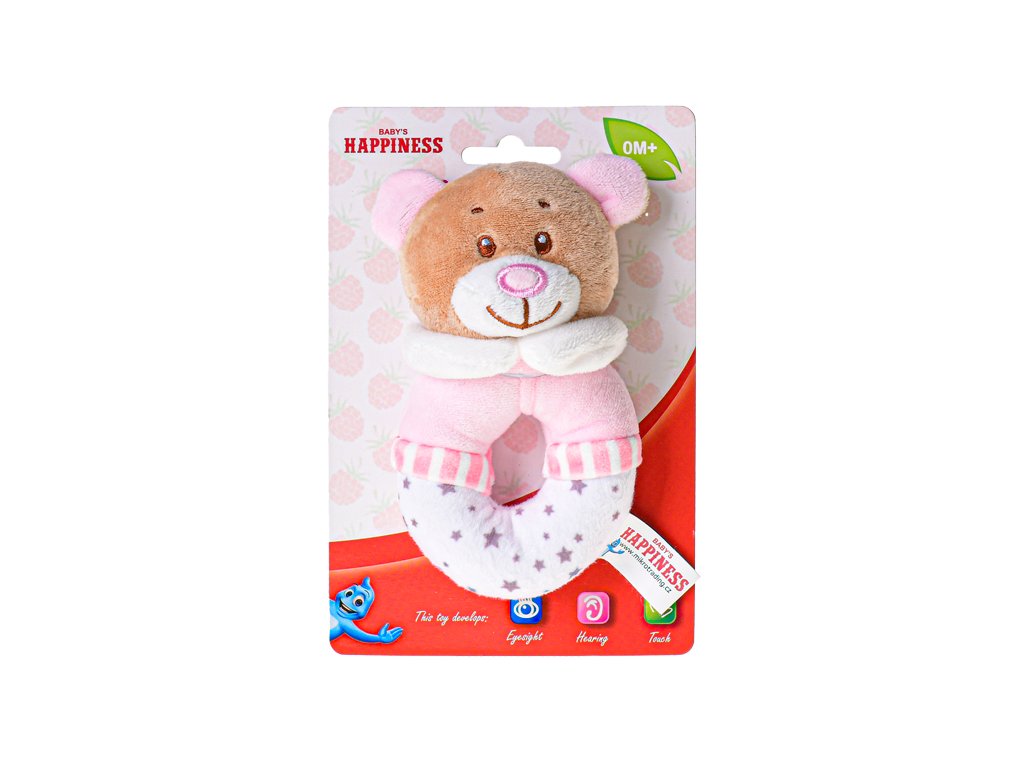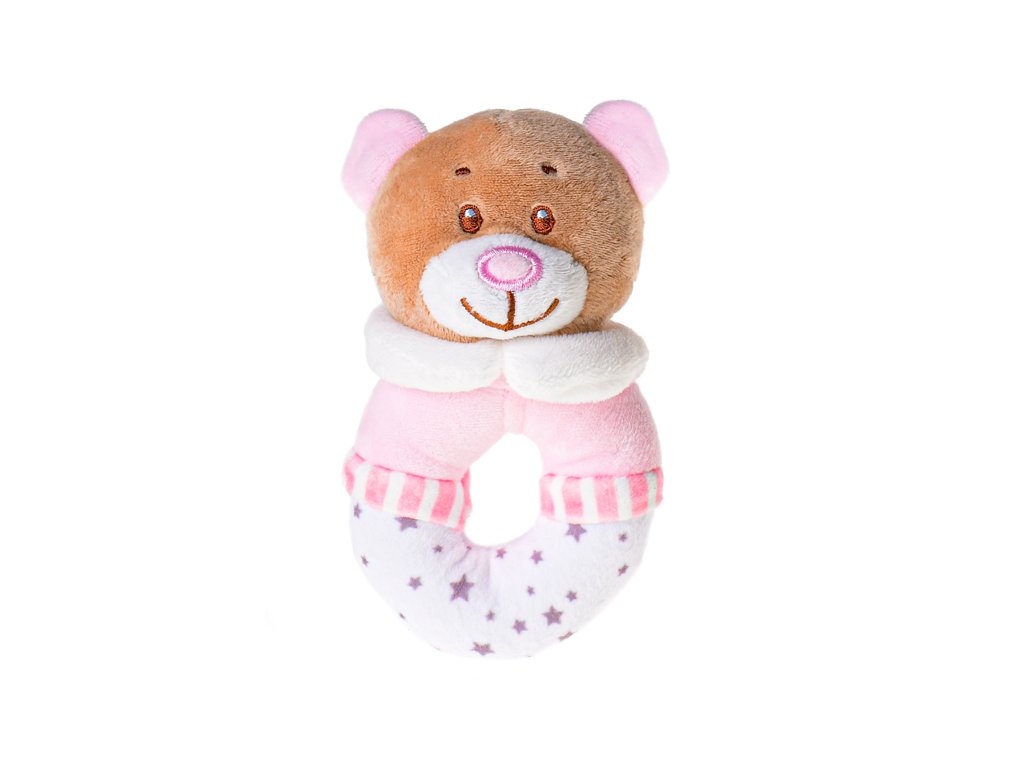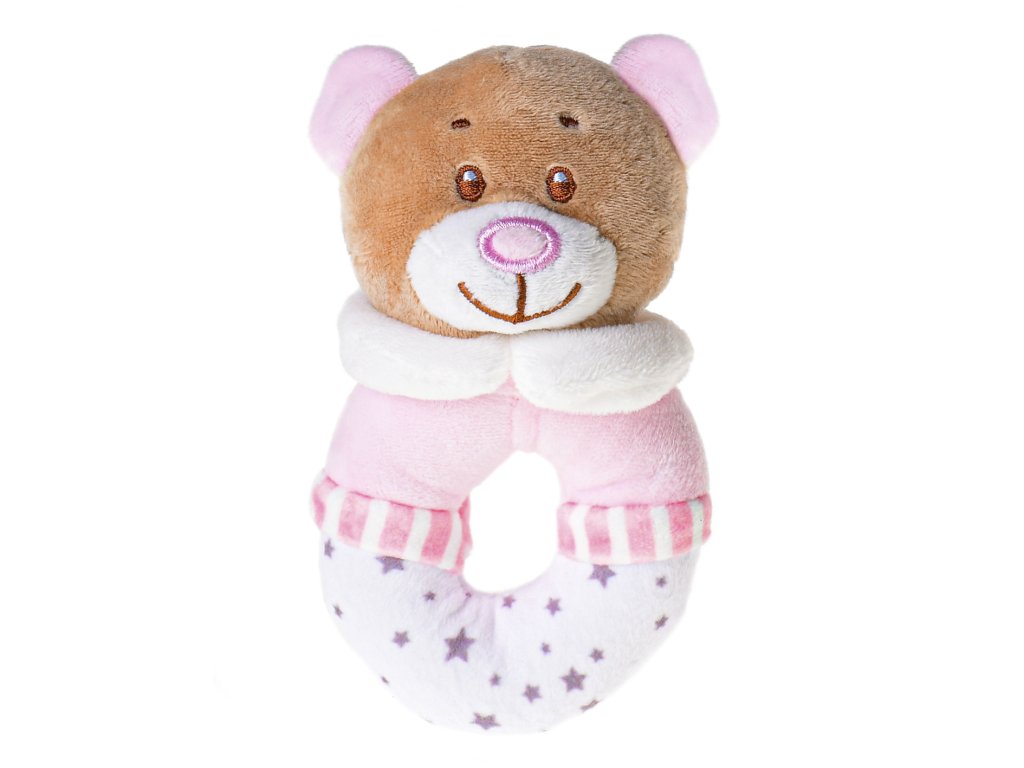 Chrastítko plyšový medvídek 13cm 2barvy 0m+ na kartě v sáčku