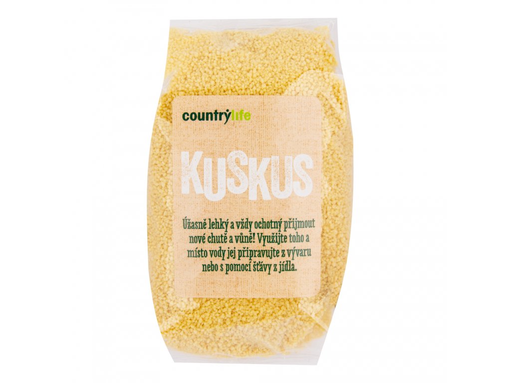 Bezvaječné těstoviny ze sušené pšeničné krupice. Jejich výhodou je snadná a rychlá příprava a univerzálnost použití. Kuskus se používá jako běžné těstoviny nebo rýže.Specifikace