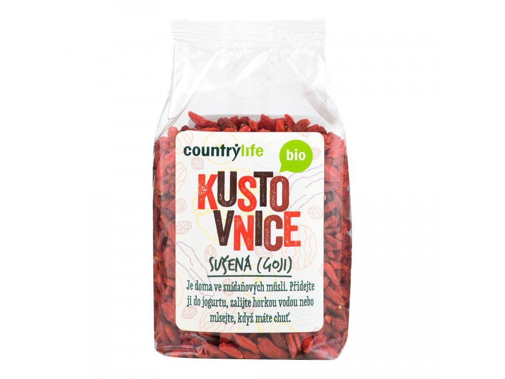 Sušené plody kustovnice cizí mají oranžovočervenou barvu a svraštělý povrch. Jsou oblíbeným doplňkem stravy. Jíst je můžete samotné, přidané do kaše nebo z nich uděláte i cukroví. Zkuste je v biokvalitě.Specifikace