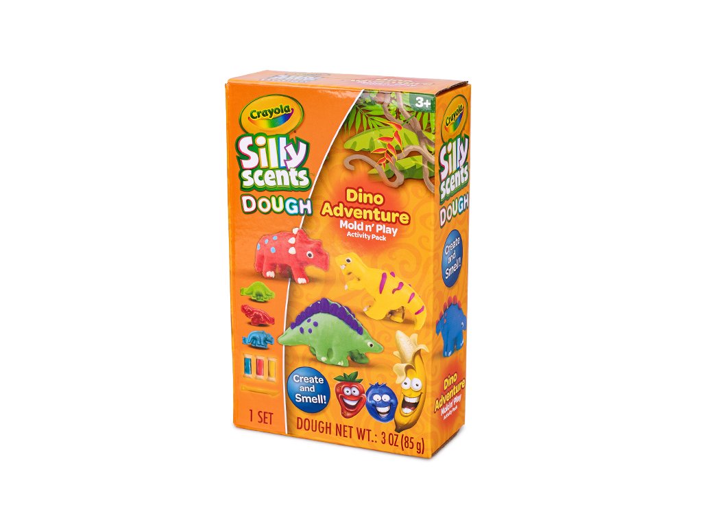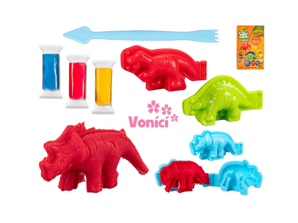 Crayola hmota tvarovací 28g vonící 3barvy 3ks + sada tvarovátek dinosaurus/jednorožec v krabičce