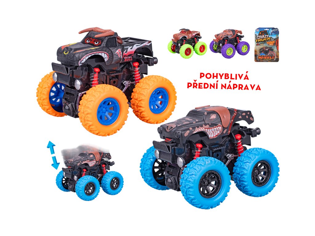 Crazy Truck monster truck 9cm na setrvačník velká kola 4barvy na kartě