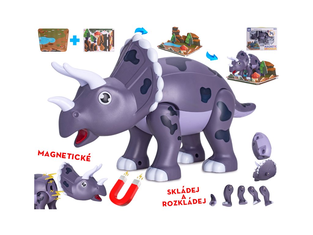 Dinosaurus Triceratops 28cm magnetický s doplňky 2ks v krabičce