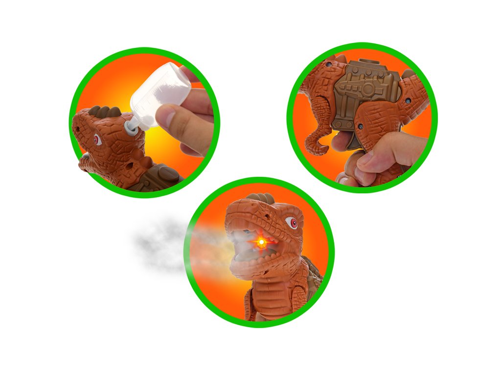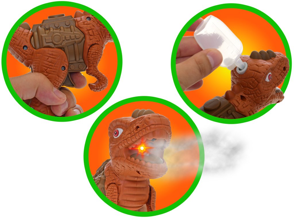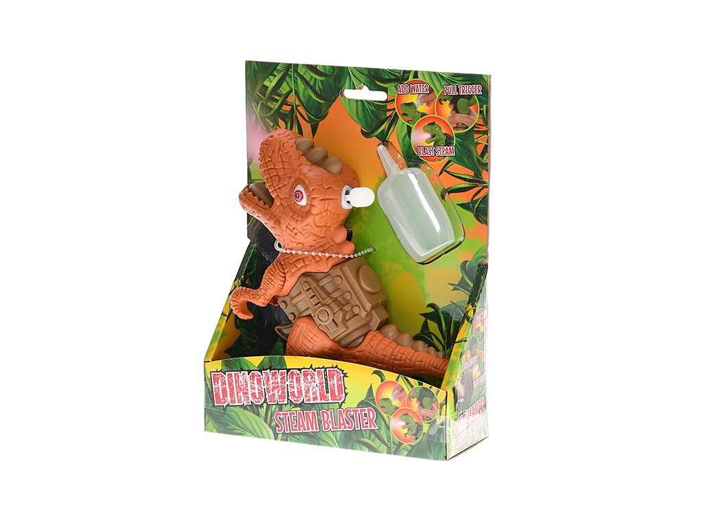 Dinoworld dinosaurus 17cm na baterie se světlem a zvukem vytvářející páru 2barvy v krabičce