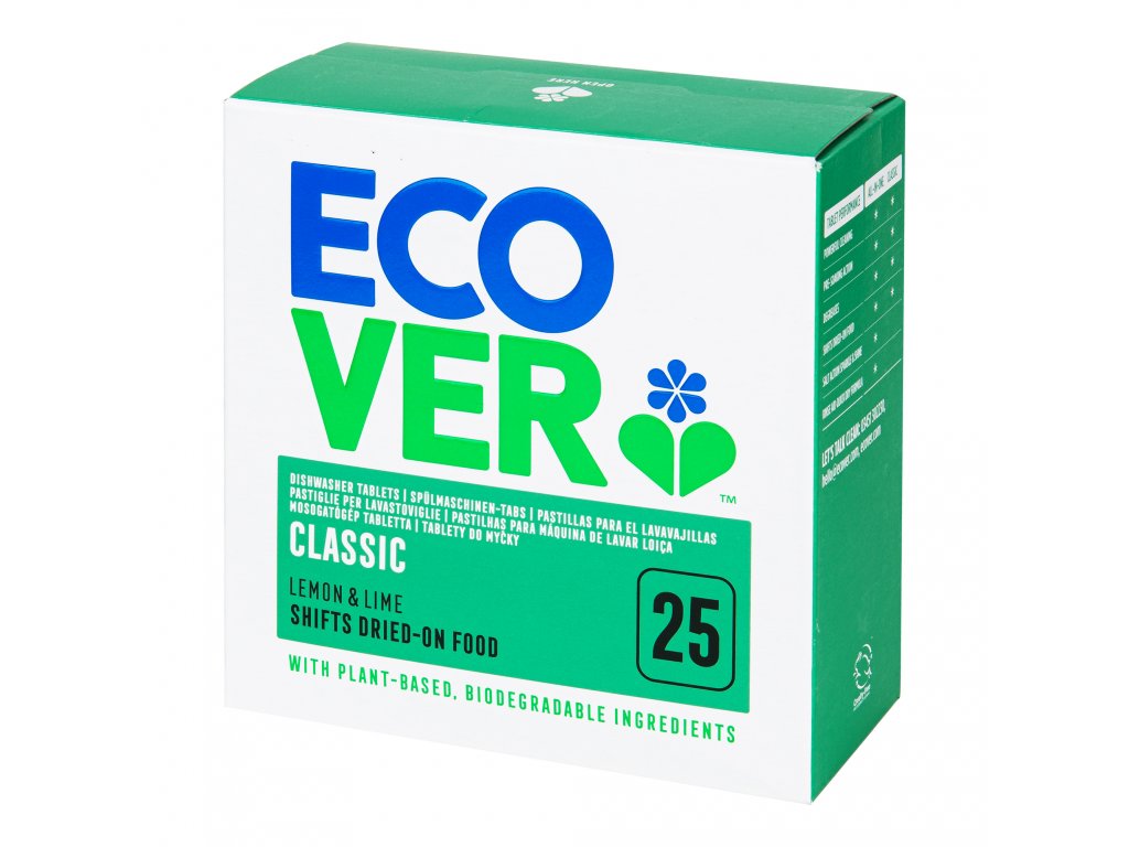 Tablety do myčky jsou stejně jako všechny výrobky od firmy ECOVER vyrobeny na rostlinné a minerální bázi. Neobsahují ropné složky, jsou v přírodě rozložitelné a nejsou testované na zvířatech. Jsou baleny ve 100% recyklovatelných obalech včetně uzávěrů.