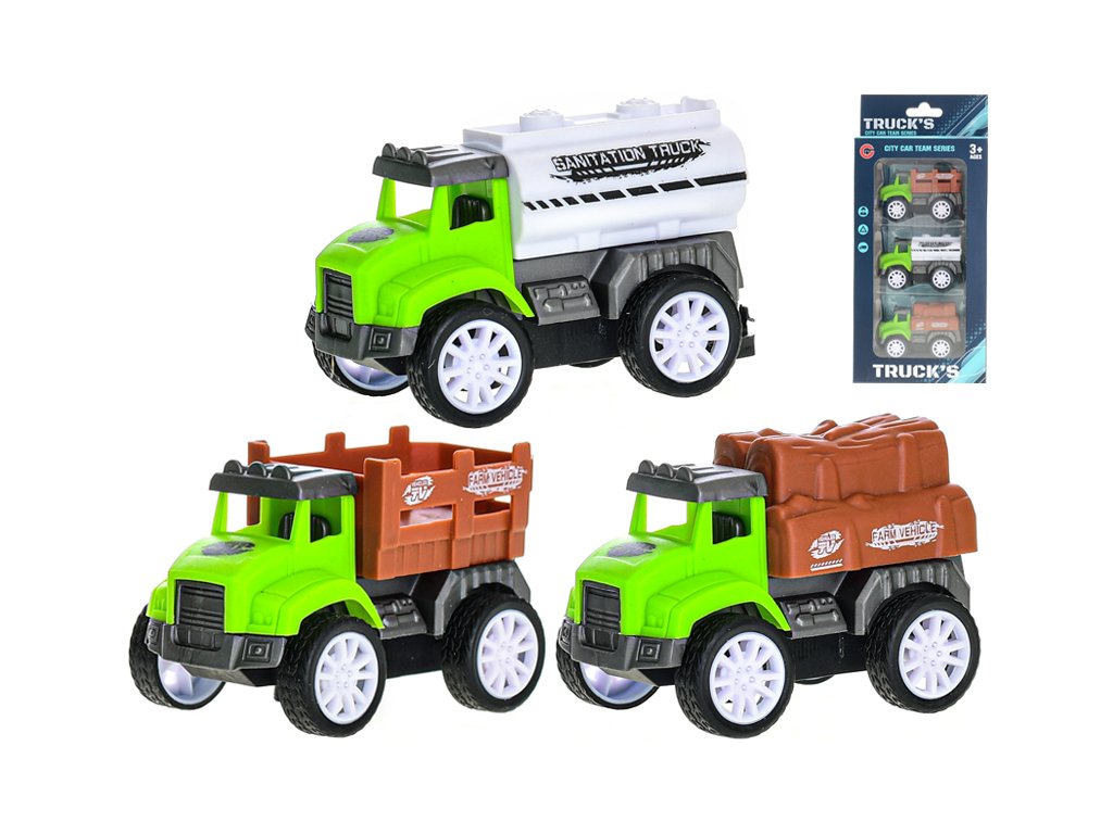 Farmářská vozidla 7,5cm zpětný chod 3ks v krabičce