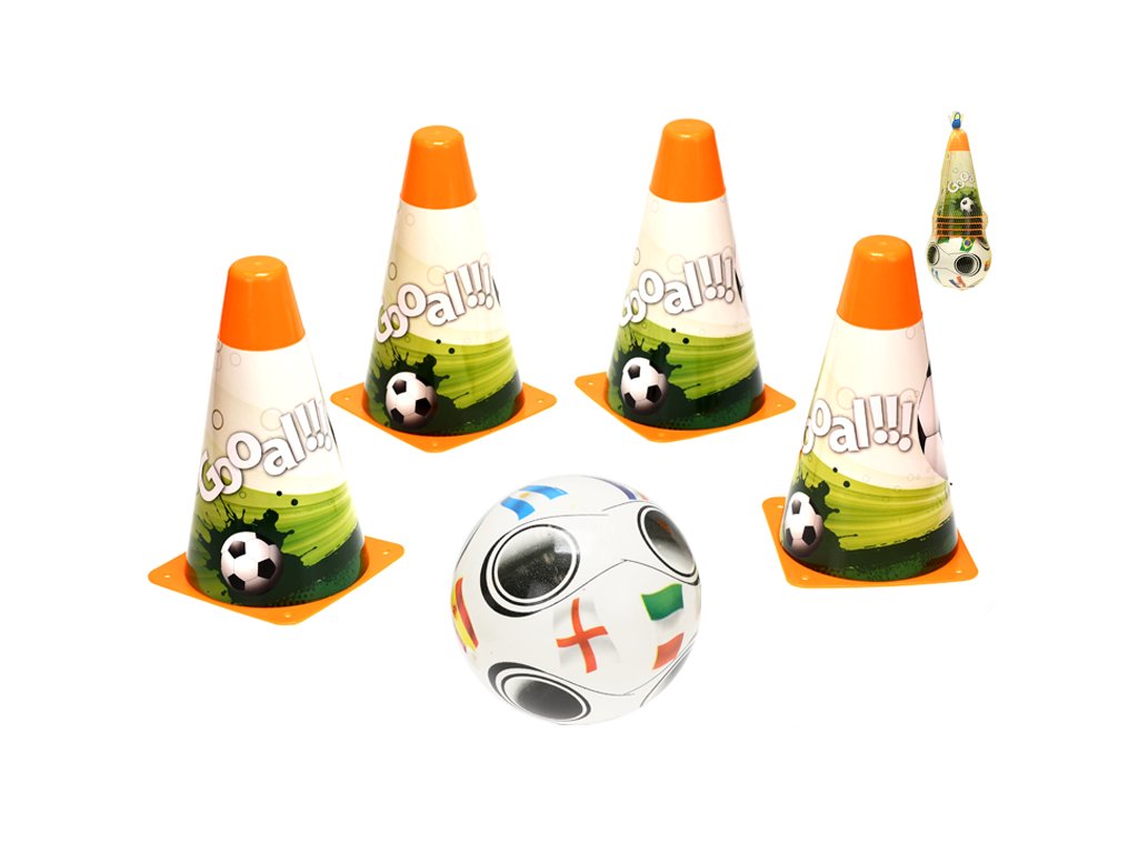 Fotbalové kužely 18cm 4ks s míčem 12cm 10m+ v síťce