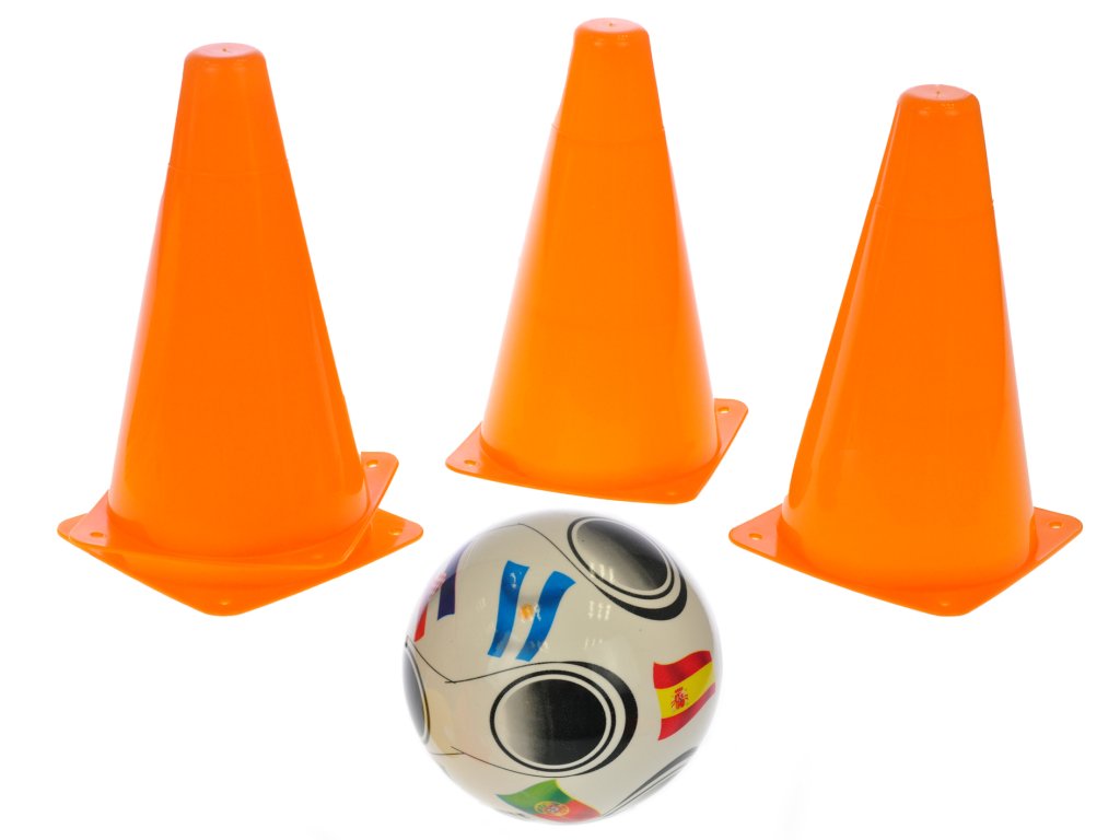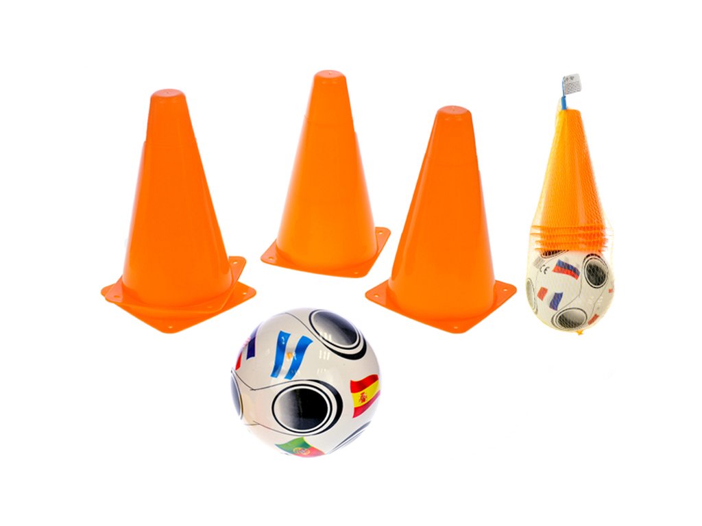 Fotbalové kužely 18cm 4ks s míčkem 11cm 10m+ v síťce