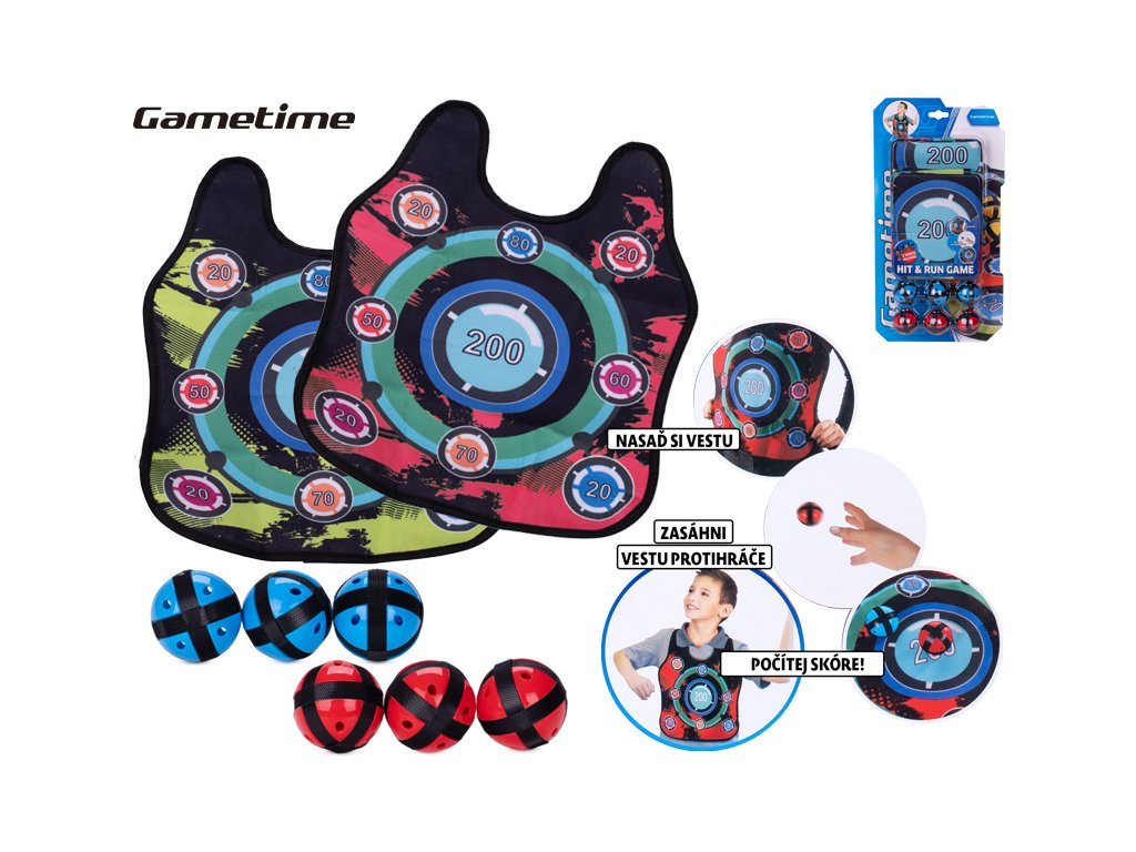 Gametime vesta s terčem 2ks a míčky 6ks na suchý zip na kartě