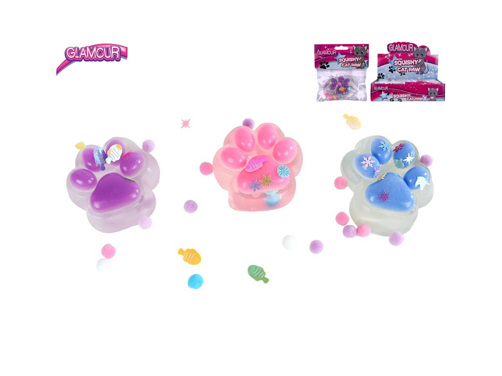 Glamour kočičí tlapka strečová 7cm s flitry 3barvy v sáčku 24ks v DBX