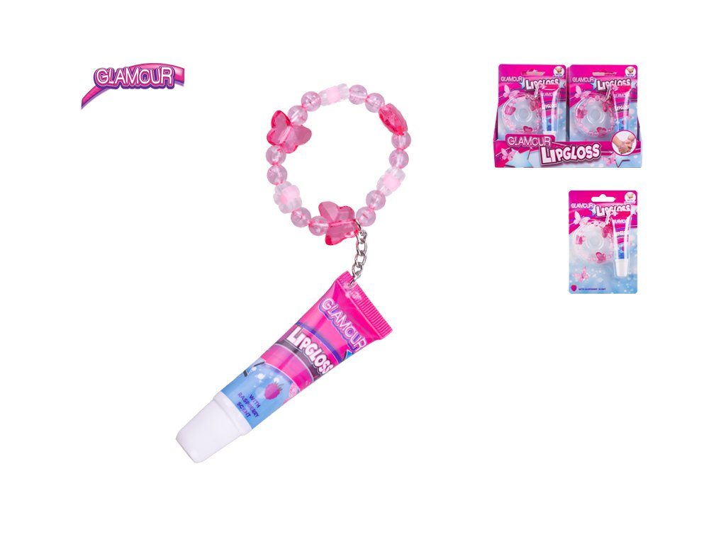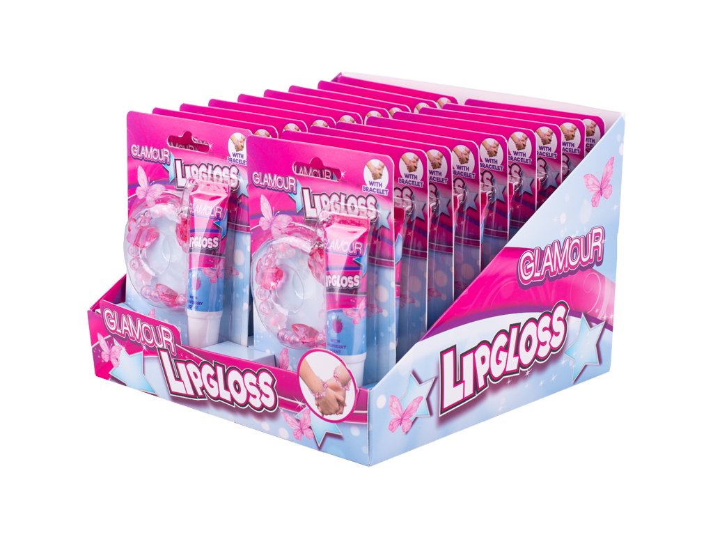 Glamour lesk na rty 12ml malinová příchuť s příveskem na kartě 18ks v DBX
