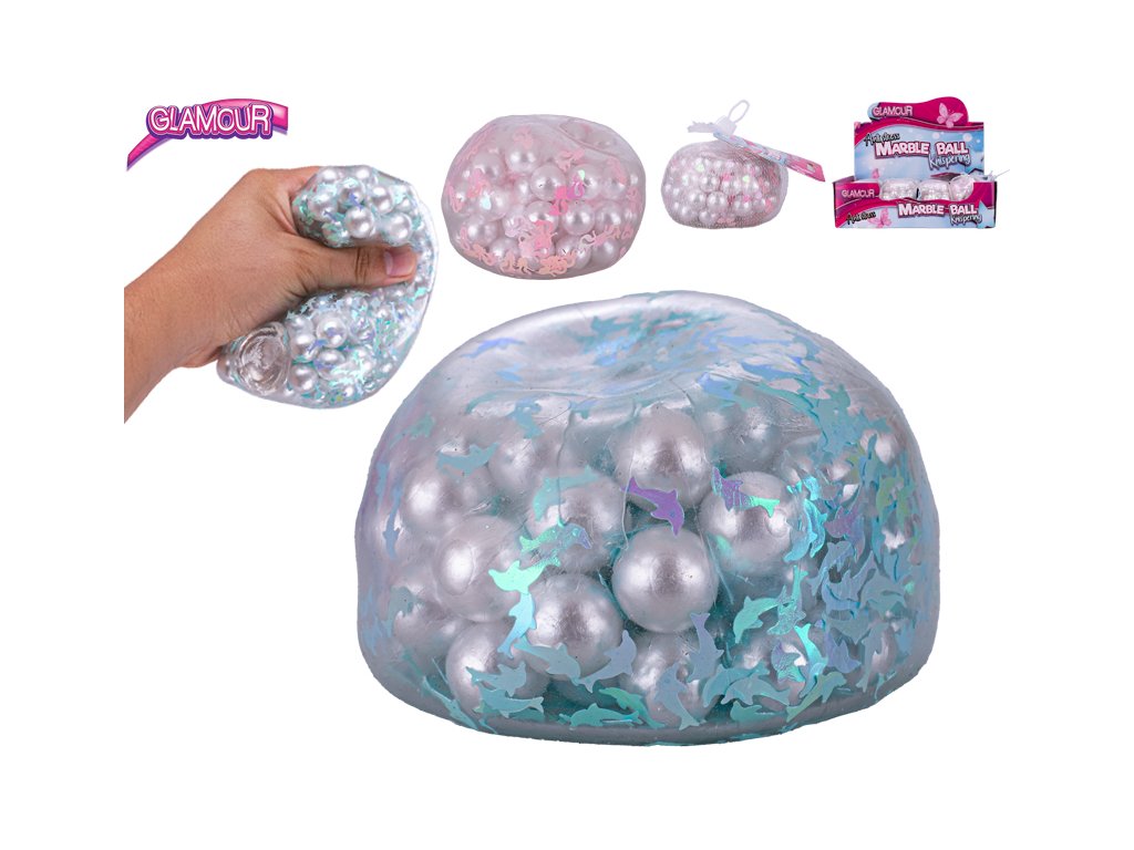 Glamour míček s křupajícími kuličkami 9,5cm 3druhy v síťce 12ks v DBX