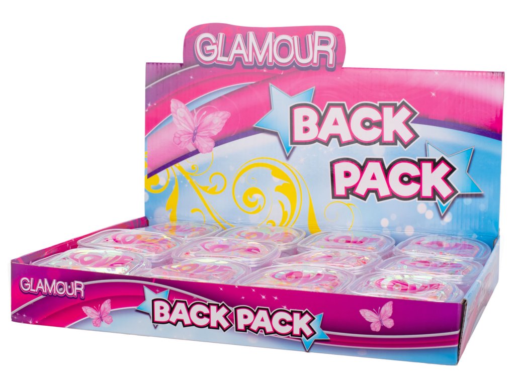 Glamour mini batůžek holografický 10,5cm se třpytkami s přívěskem na klíče 12ks v DBX