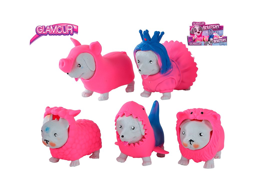 Glamour pejsek strečový 8,5cm v oblečku 6druhů 12ks v DBX